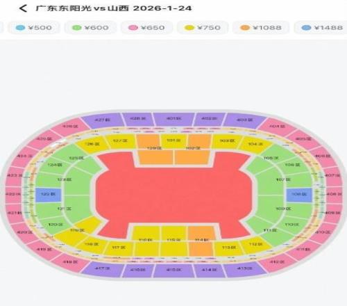 有媒体截图发布广东队主场的票价情况,主场对阵山西队,我们看到区间为500、600、650、750、1088、1488、1688、1888,达到8种价格。