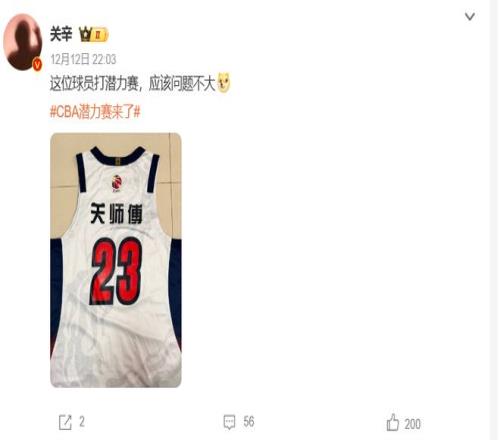 广东队的知名跟队记者,报道CBA20多年的关辛也在赛后晒出了一张带有他外号的球衣给出这样的回应:这位球员打潜力赛,应该问题不大。